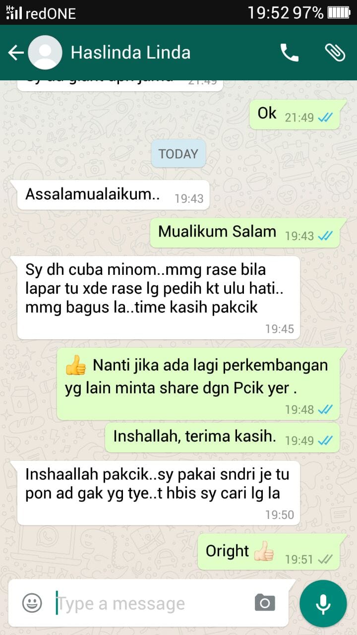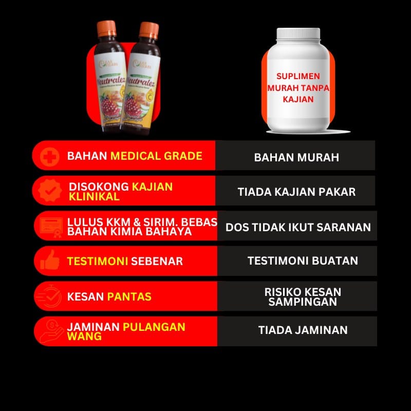 PENAFIAN: Keberkesanan produk ini bergantung kepada kesesuaian tubuh individu. Hasil penggunaan mungkin berbeza antara seorang dengan yang lain. Kesan optimum hanya dapat dicapai melalui amalan yang konsisten dan cara pengambilan yang betul, seperti yang dilaporkan dalam pelbagai testimoni pengguna. Kita berikhtiar, Tuhan yang menyembuhkan.