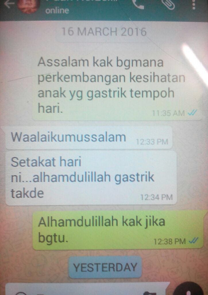 “Setakat hari ni… Alhamdulillah gastrik takde.”